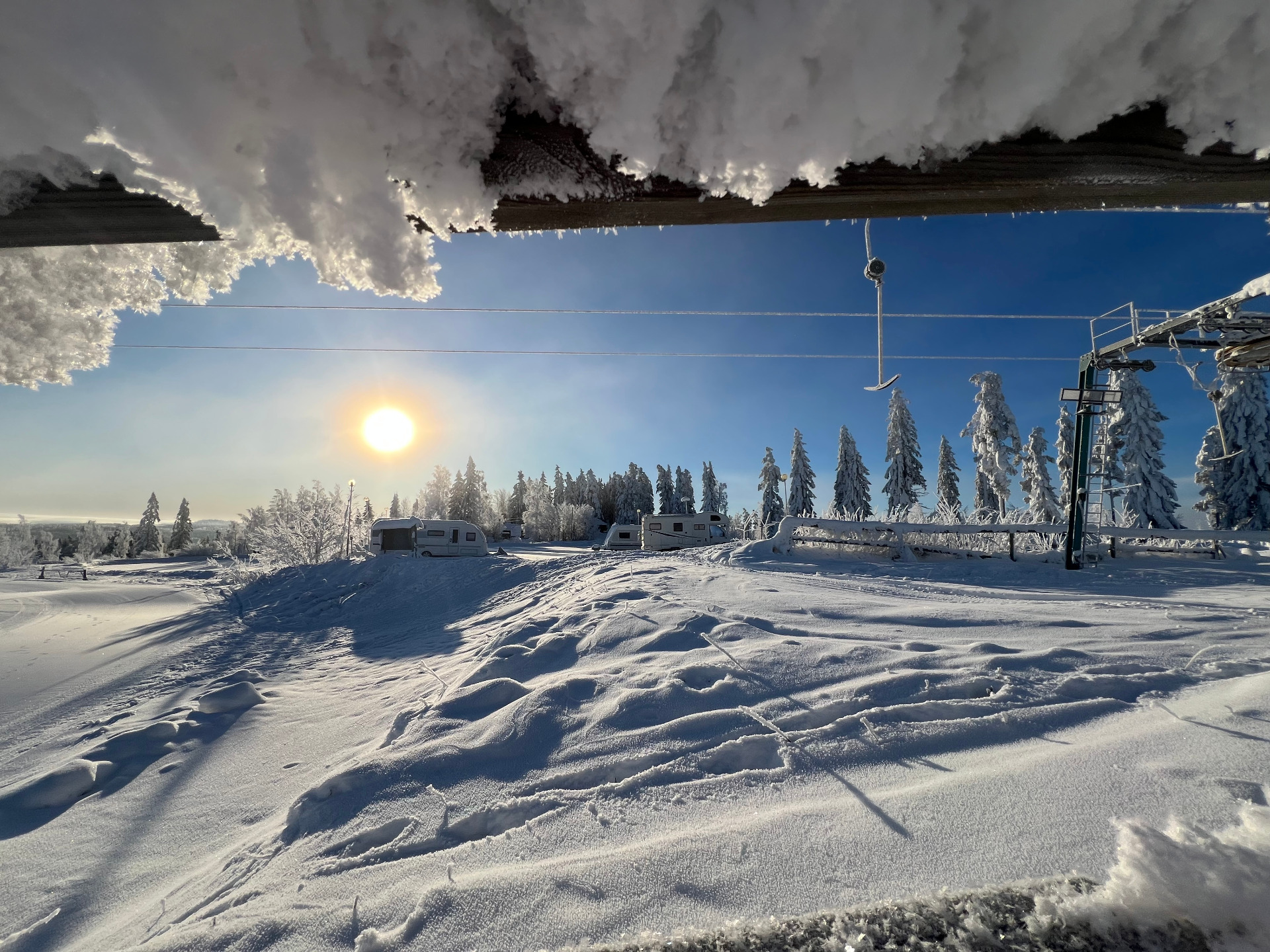 Der Caravanplatz Riihivuori ist im Winter ein wahres Paradies für Familien. Unser Stellplatz befindet sich direkt im Hofbereich des beliebten Skizentrums. Das bedeutet für Sie: Skipisten, Kinderskispuren und eine lustige Rodelbahn liegen direkt vor Ihrer Wohnmobiltür. Nach einem aktiven Tag im Schnee können Sie sich in unseren sauberen Duschen aufwärmen oder den Abend in der echten finnischen Sauna genießen, die bei uns immer im Preis inbegriffen ist.